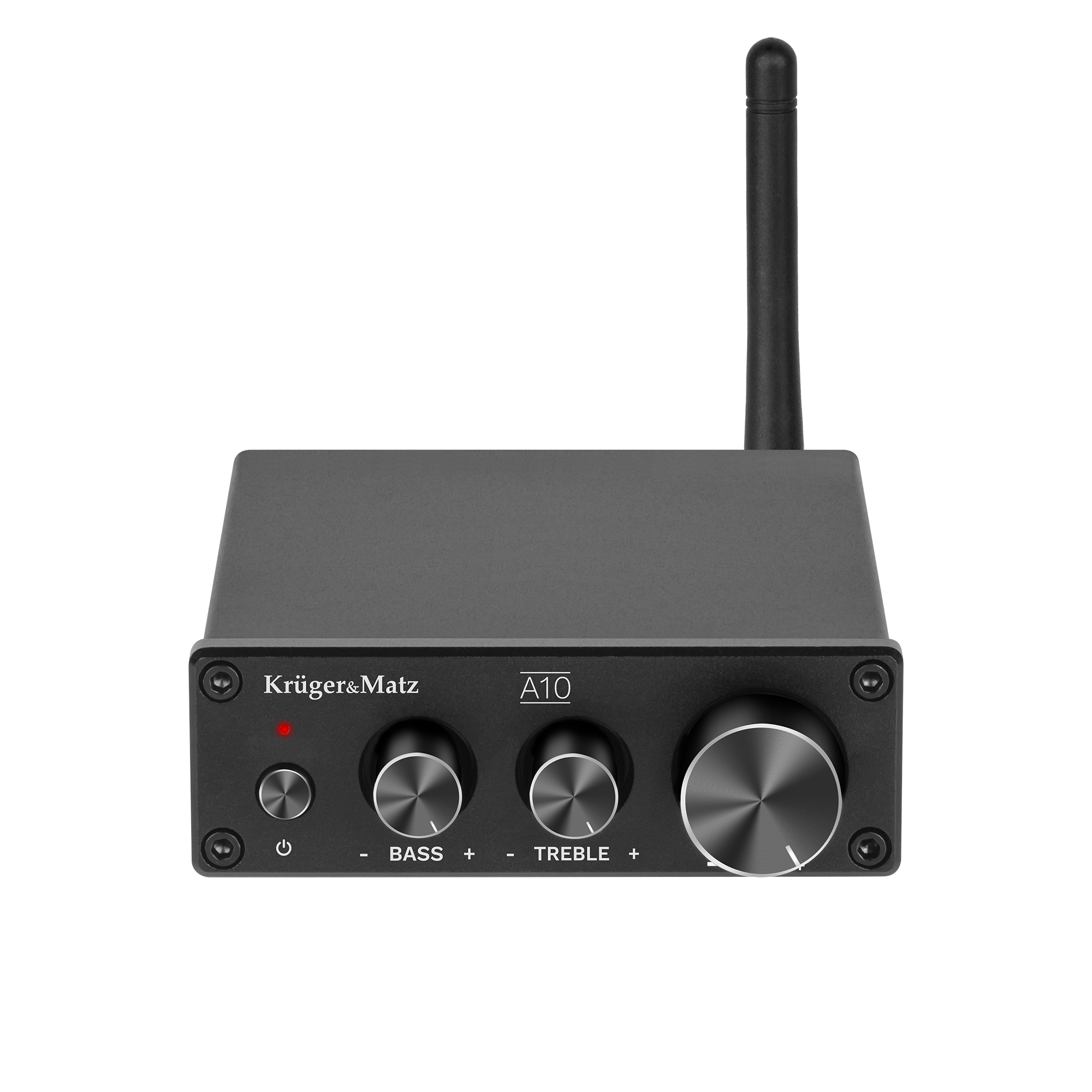 Na przednim panelu wzmacniacza A10 znajduje się m.in. włącznik, służący również do wyboru źródła dźwięku, a także pokrętło do regulacji głośności oraz tonów niskich i wysokich. Dzięki temu obsługa urządzenia jest szybka i intuicyjna.