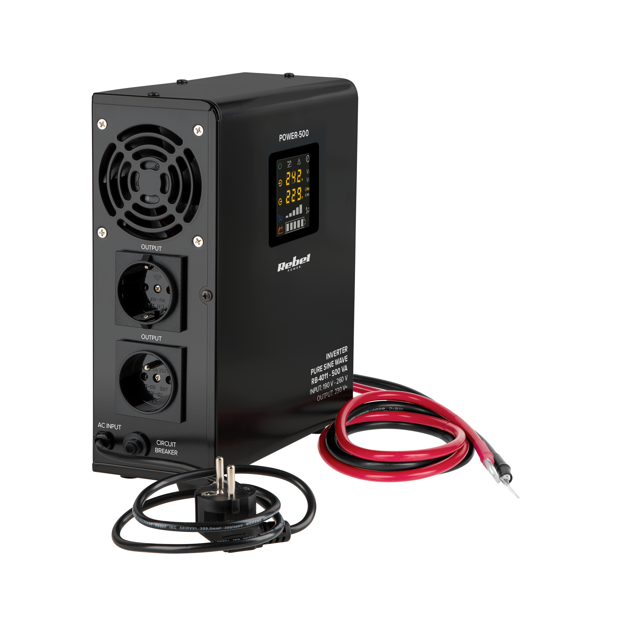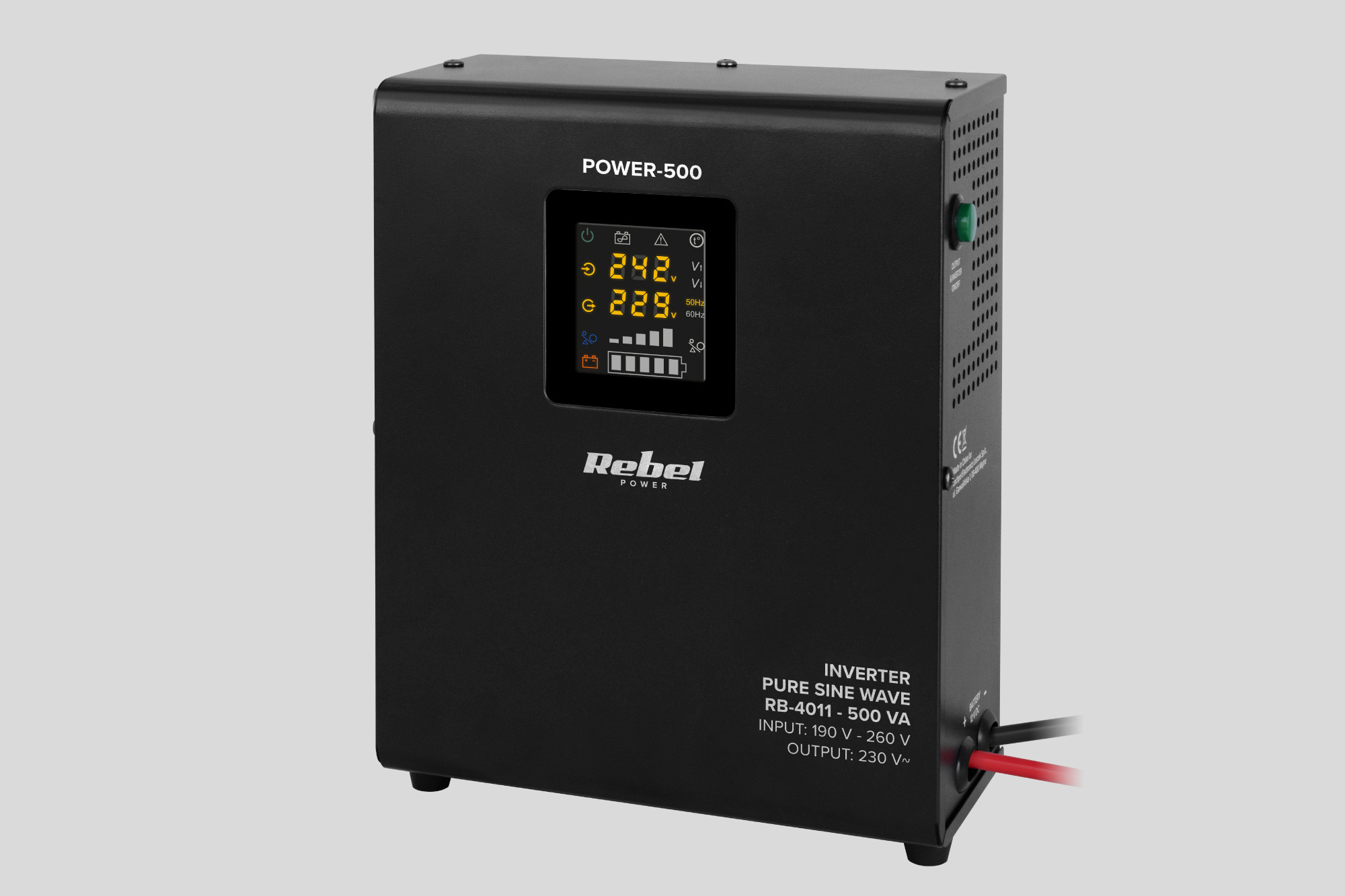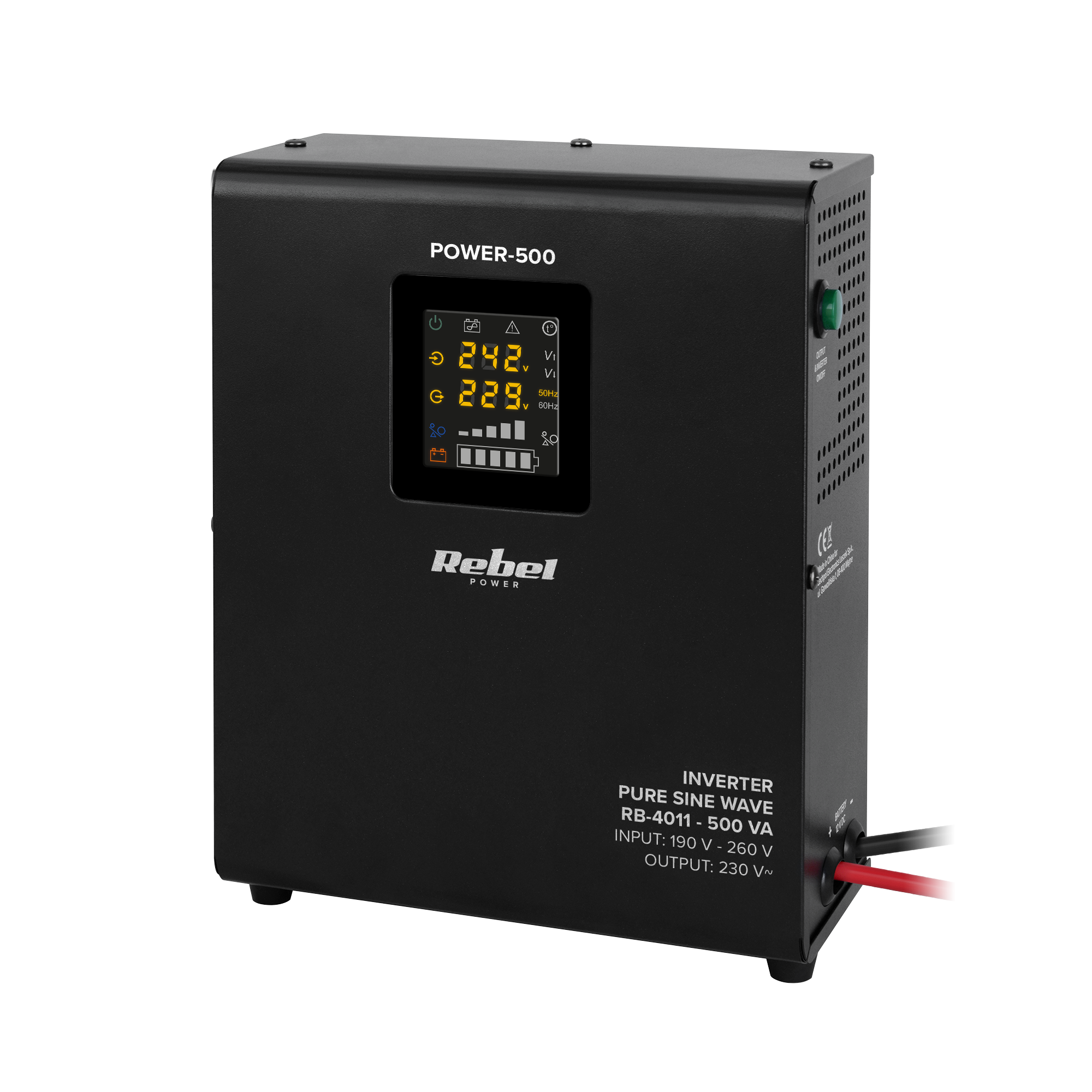 Zasilacz Awaryjny Naścienny Rebel POWER-500 - przetwornica z czystym przebiegiem sinusoidalnym i funkcją ładowania 12V 230V 500V