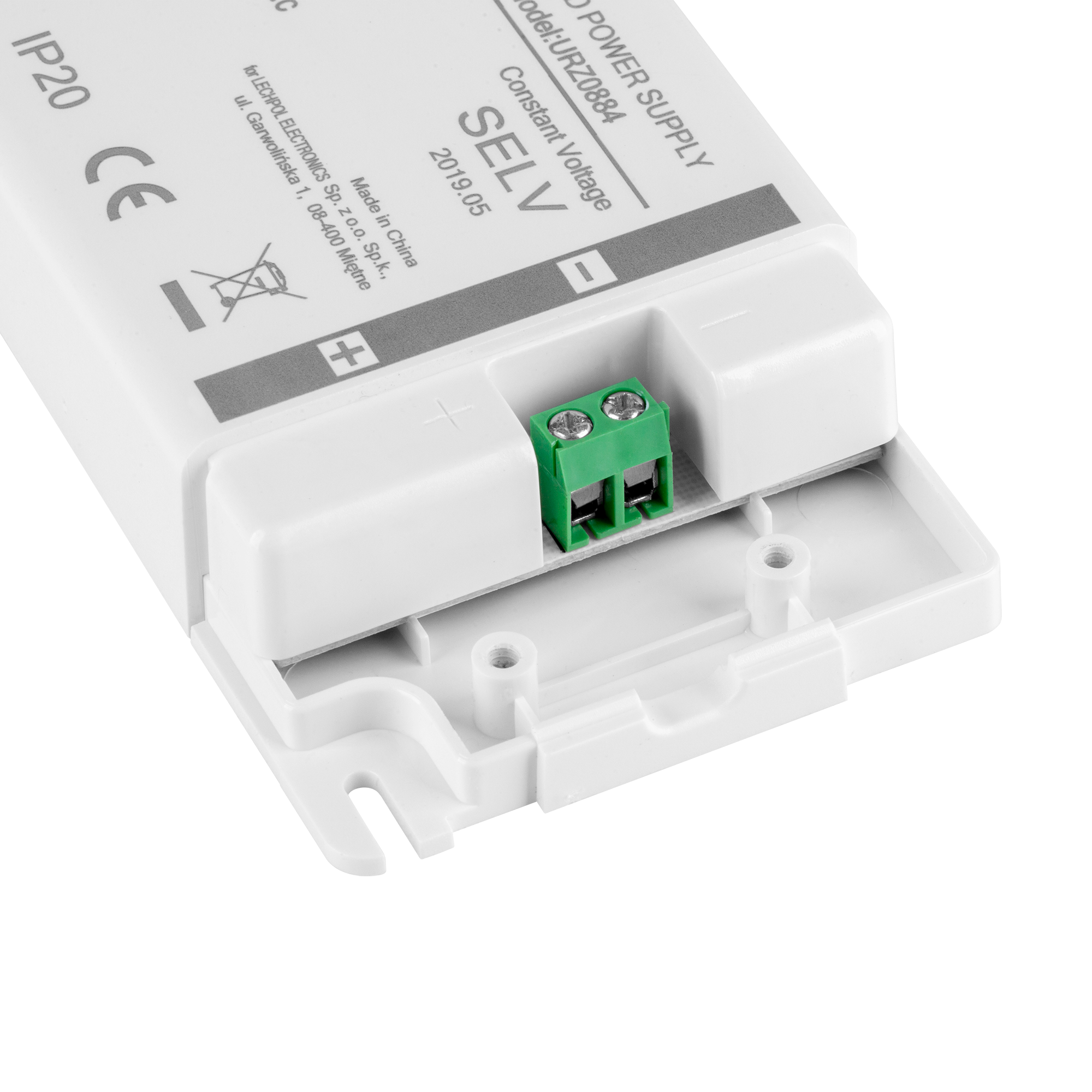 Zasilacz ma kompaktowe wymiary 166 x 48 x 37 mm, co ułatwia jego instalację i integrację z systemami oświetleniowymi. Jego niewielki rozmiar pozwala na łatwe ukrycie i montaż w różnych miejscach.