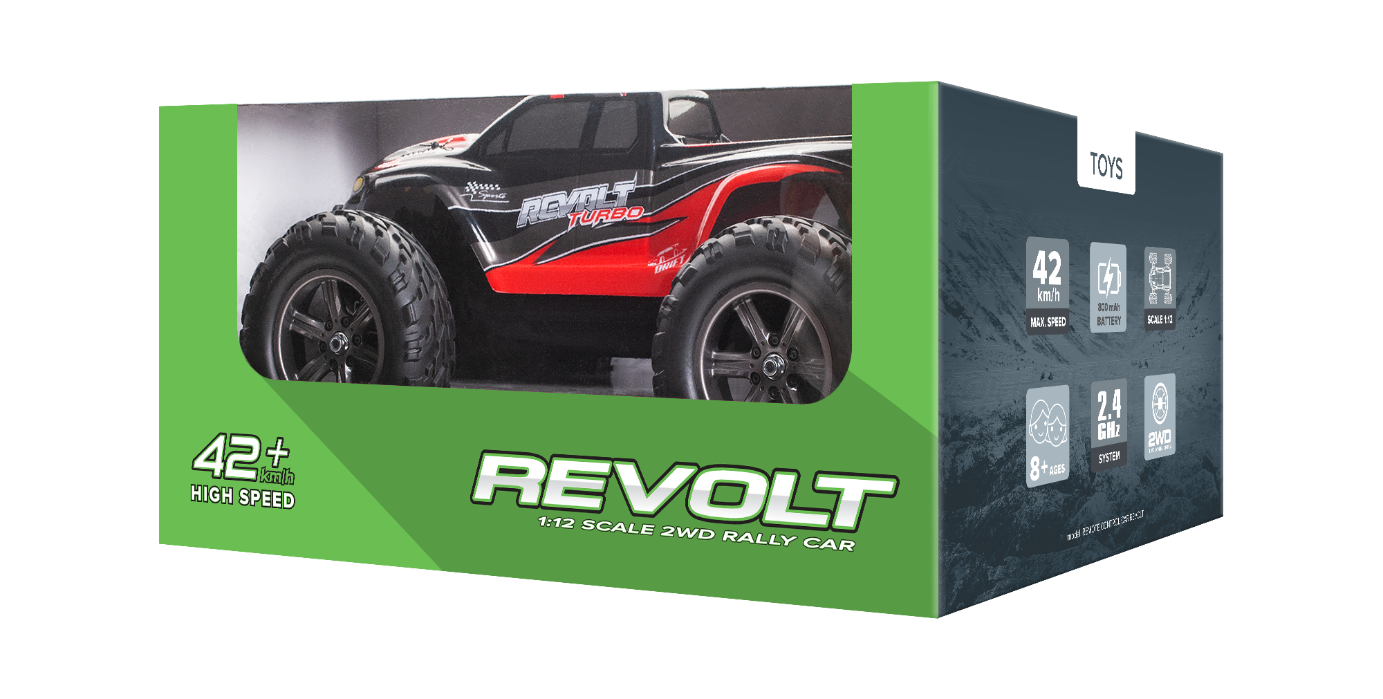 Zdalnie sterowany samochód Revolt to coś więcej niż zwykła zabawka. To terenowe auto jest wręcz imponujących rozmiarów, ponieważ zostało wykonane w skali 1:12. Dzięki temu z pewnością spodoba się zarówno małym jak i dużym dzieciom.