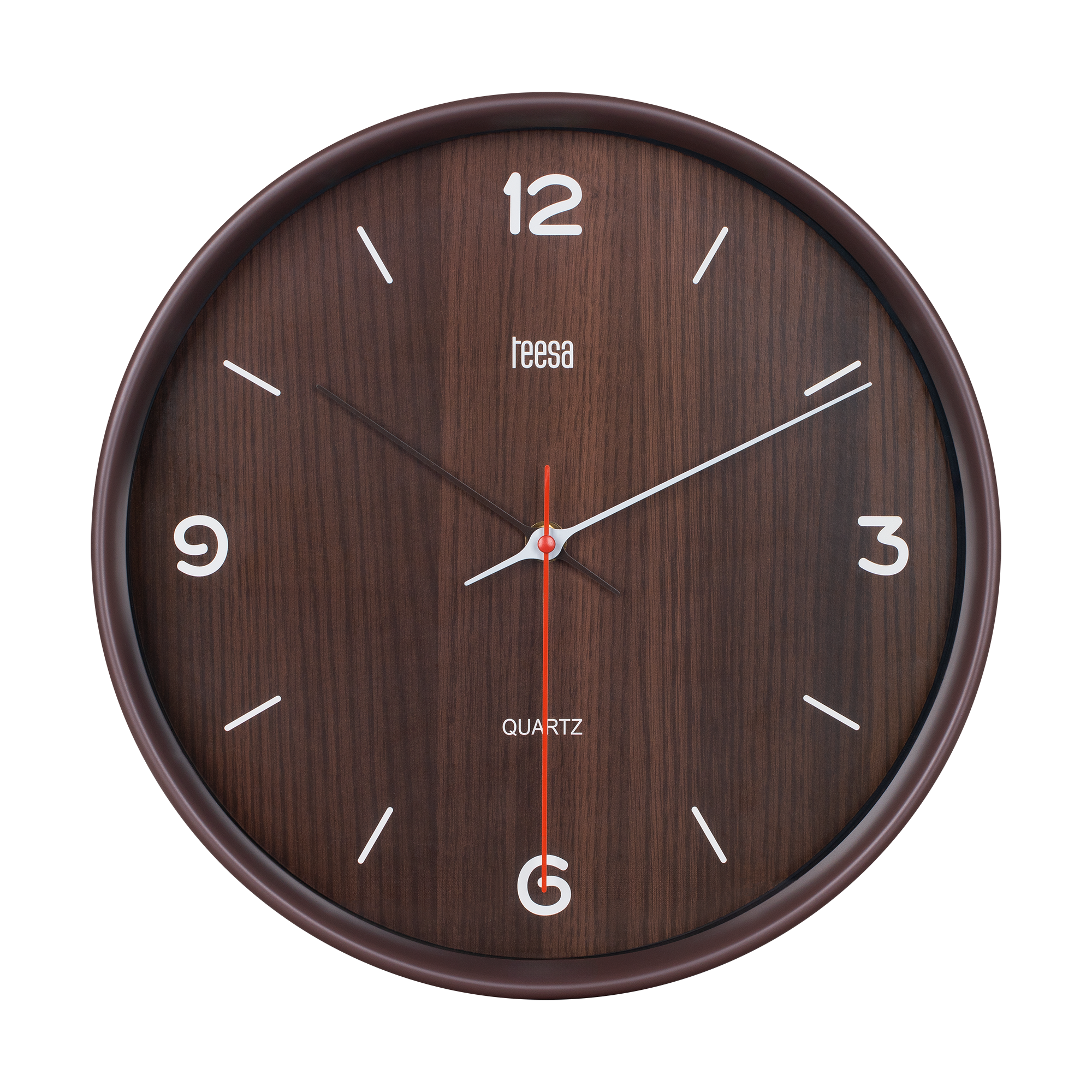 Zegar ścienny Teesa o średnicy 30 cm to klasyczne i eleganckie rozwiązanie, które doskonale sprawdzi się w każdym wnętrzu. Wyposażony w mechanizm kwarcowy z analogowym wyświetlaniem czasu, zapewnia precyzyjne odmierzanie czasu i niezawodność. Dzięki ciemnej tarczy z czytelnymi cyframi arabskimi, zegar jest nie tylko funkcjonalny, ale także stylowy.