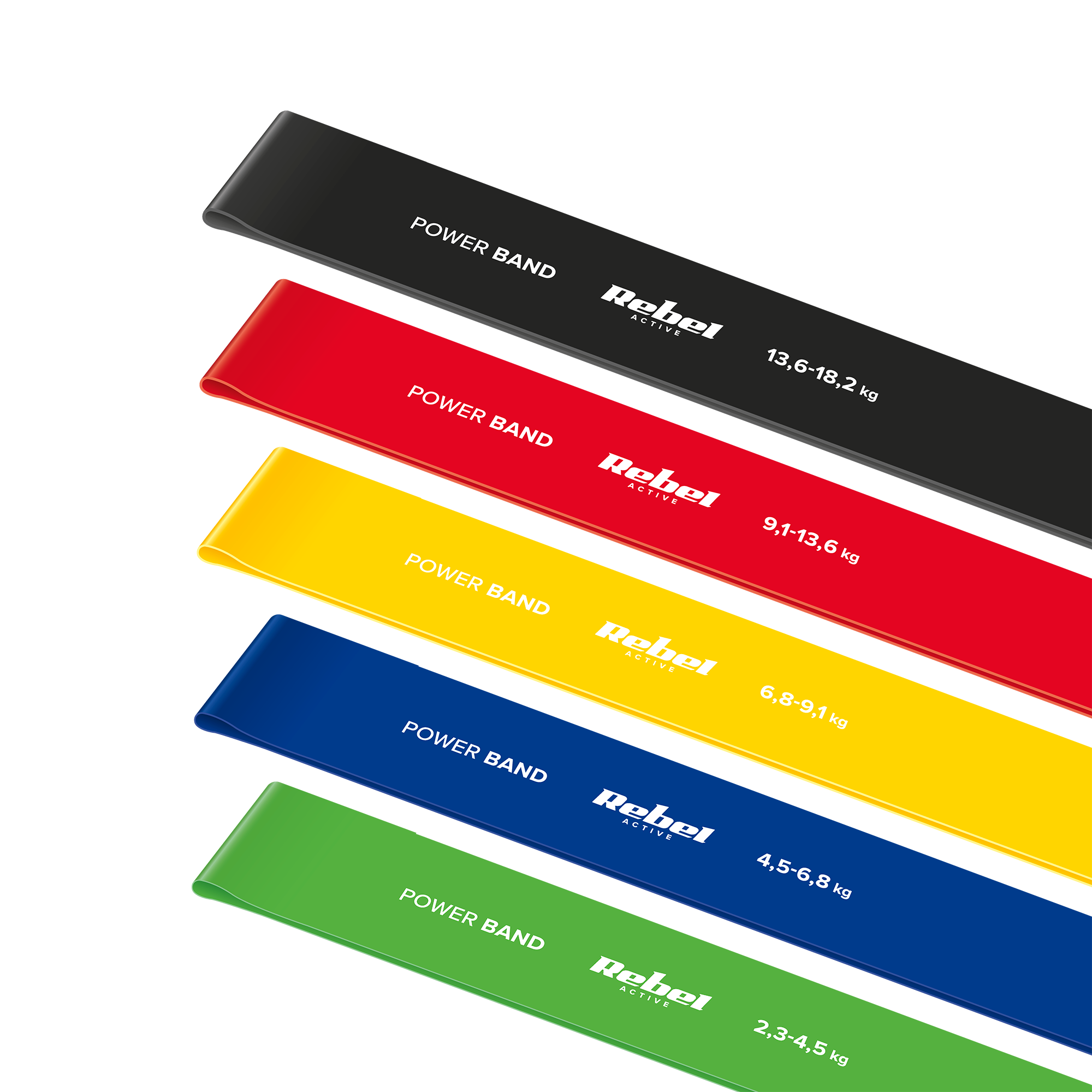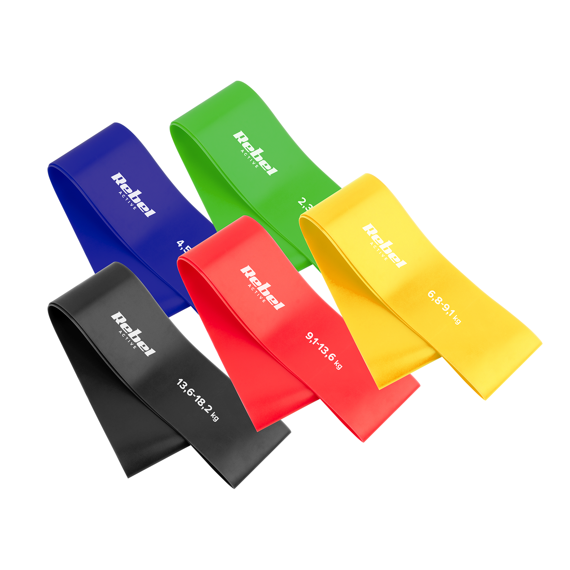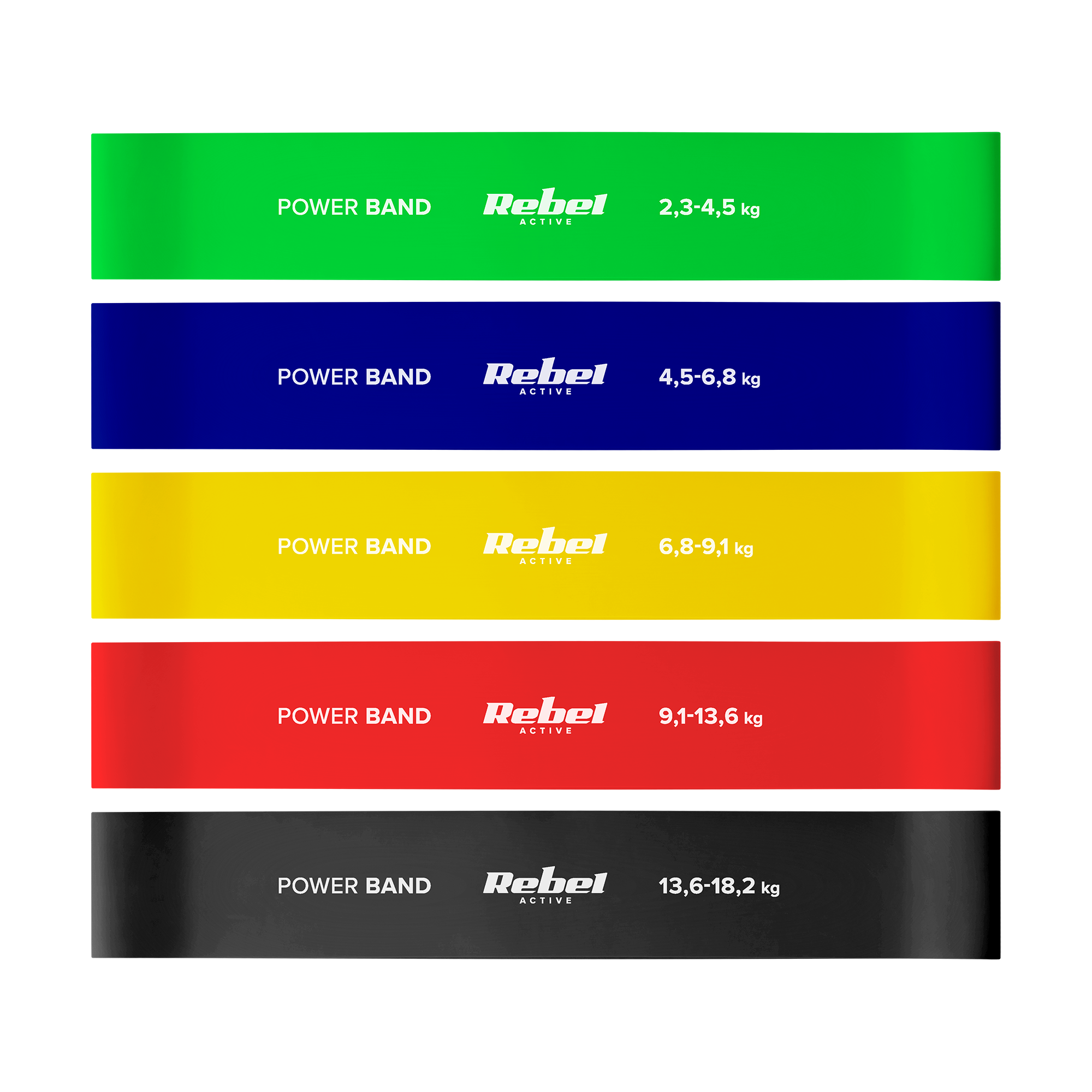 Zestaw gum do ćwiczeń lateksowy - Mini Band L, 2.3-18.2 kg, 5 gum, kolorowy, REBEL ACTIVE