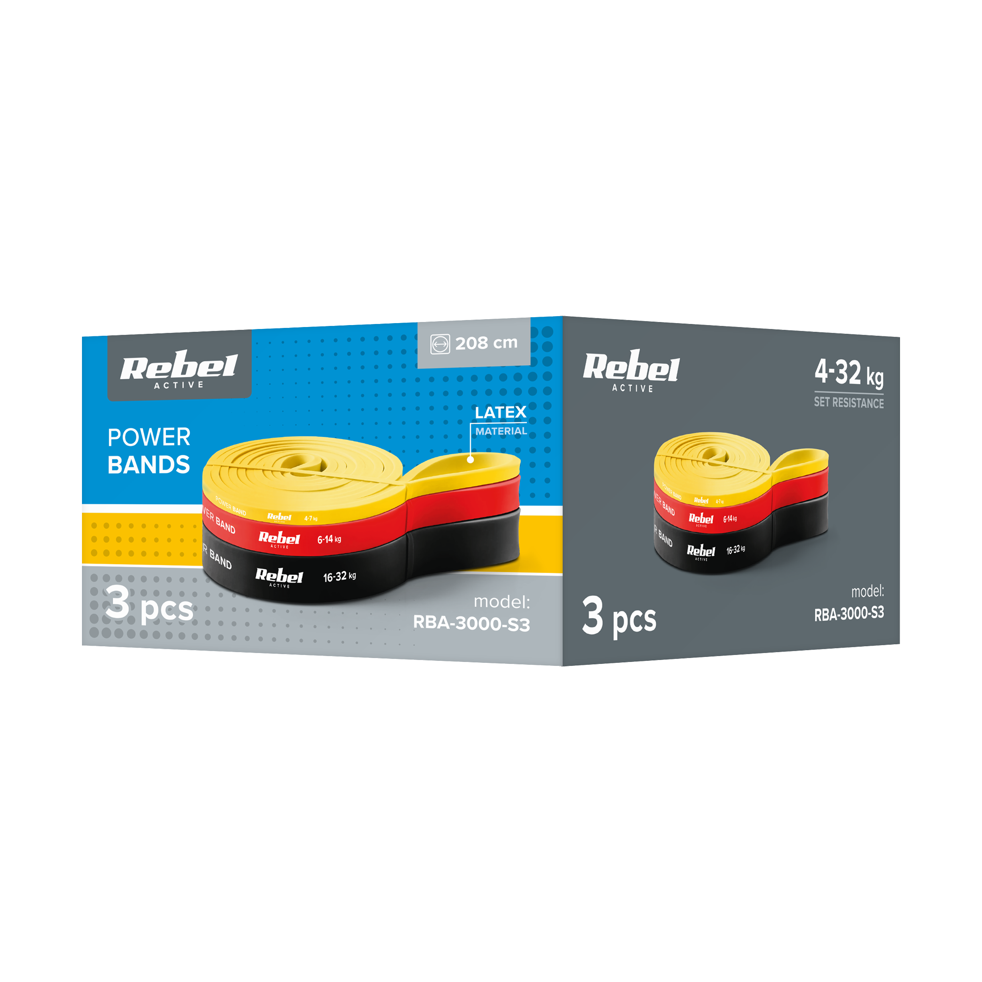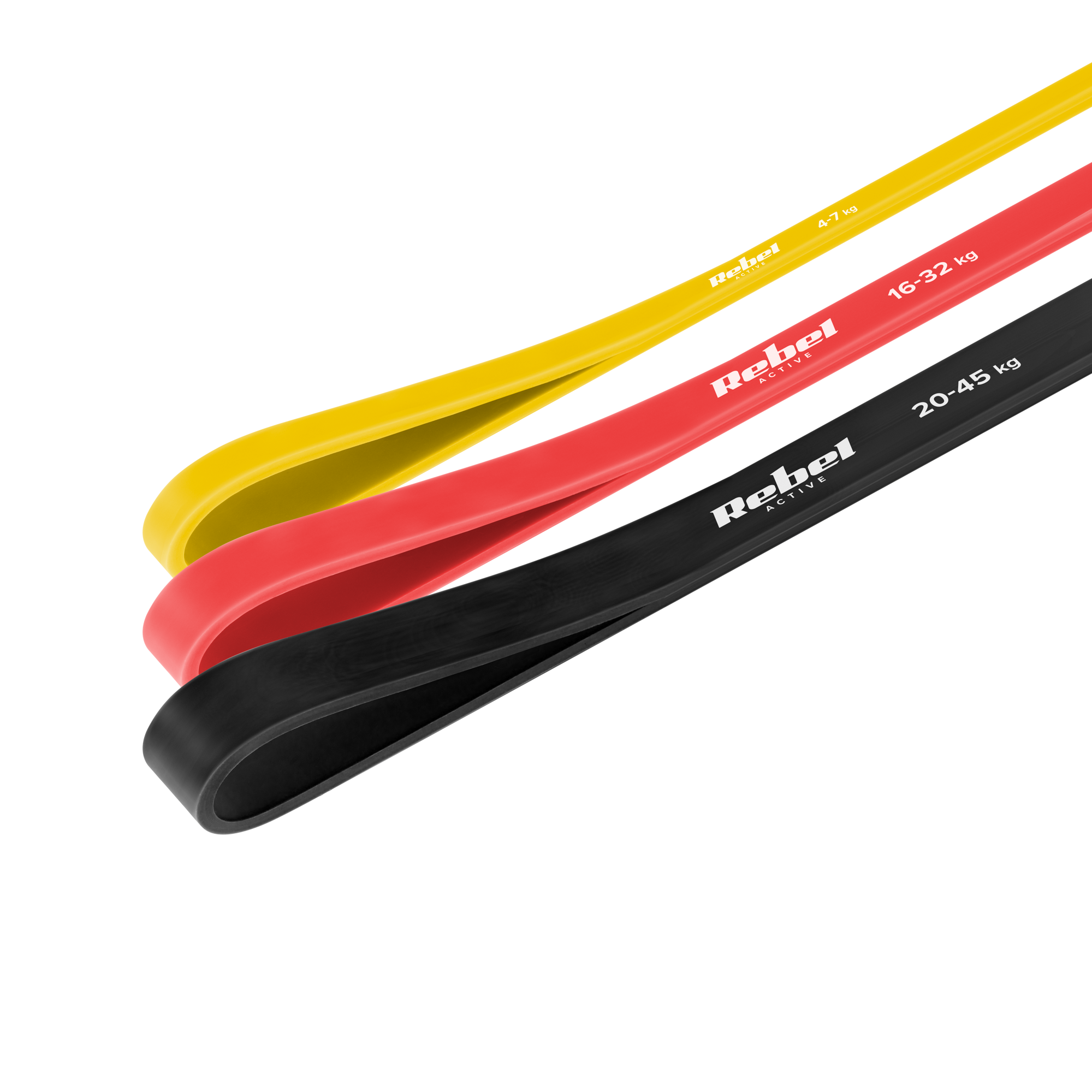 Zestaw gum do ćwiczeń lateksowy - Power Band PLs-1, 4-32 kg, 3 gumy, REBEL ACTIVE