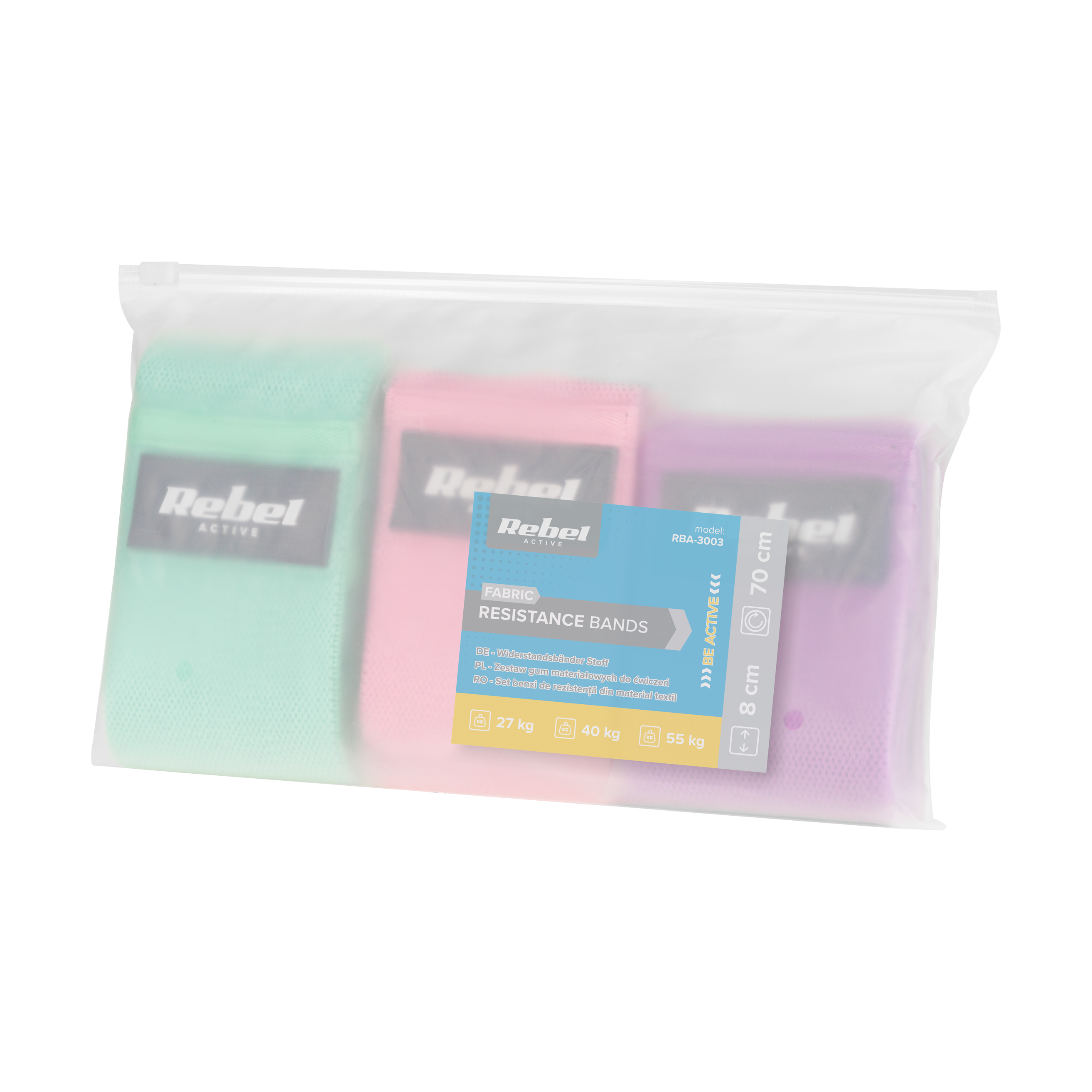 Zestaw gum do ćwiczeń materiałowy - Mini Band M, 27-55 kg, 3 gumy materiałowe, REBEL ACTIVE