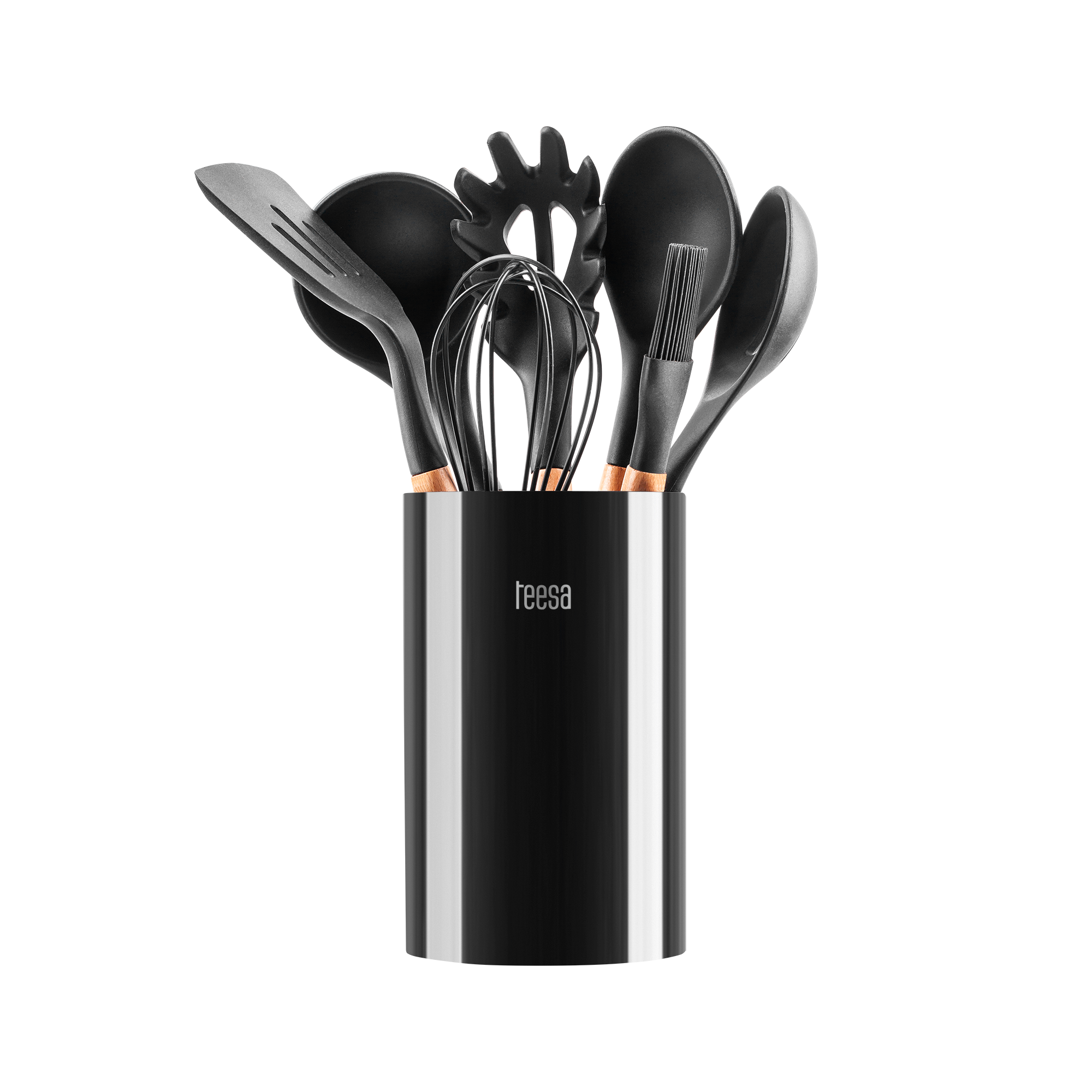 Z myślą o tym został stworzony zestaw przyborów kuchennych Teesa TSA0122, który znakomicie dopełni wnętrza zarówno klasycznych jak i nowoczesnych kuchni. W jego skład wchodzą wszystkie najczęściej stosowane akcesoria, niezbędne do przygotowania codziennych posiłków. tj. chochla, łyżka do serwowania oraz do makaronu, łopatka i łyżka cedzakowa, pędzelek i trzepaczka.