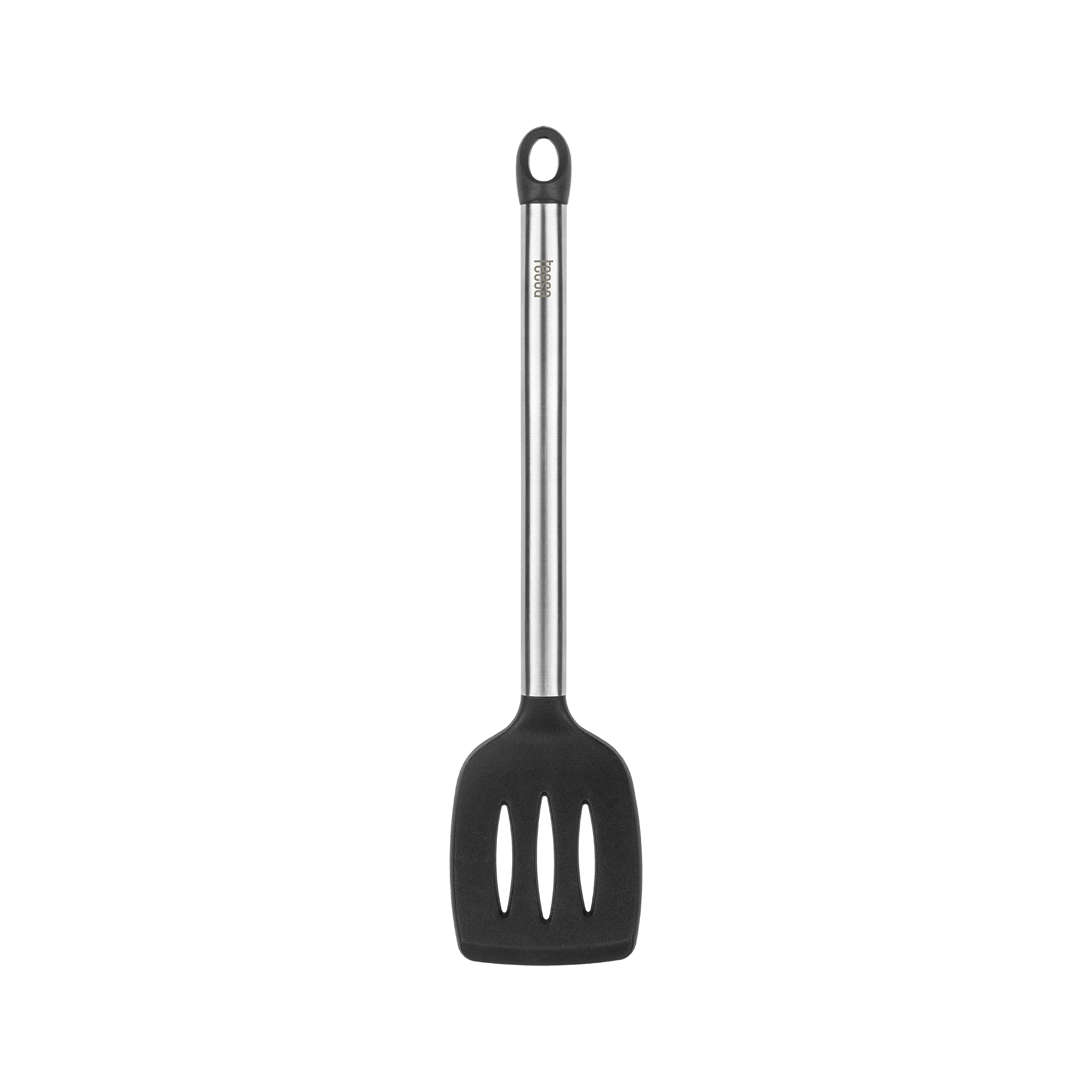 Przybory kuchenne Teesa zostały wykonane z wysokiej jakości nietoksycznego oraz przeznaczonego do kontaktu z żywnością silikonu. Odporny na ciepło materiał sprawia, że potrawy nie przywierają do powierzchni akcesoriów, co zdecydowanie podnosi komfort w czasie ich używania. Zastosowanie silikonu ma jeszcze jedną zaletę - chroni Twoje garnki przed zarysowaniami. Całość dopełnia wykonana ze stali nierdzewnej wygodna rączka, z funkcjonalnym zaczepem umożliwiającym powieszenie na wieszaku kuchennym.