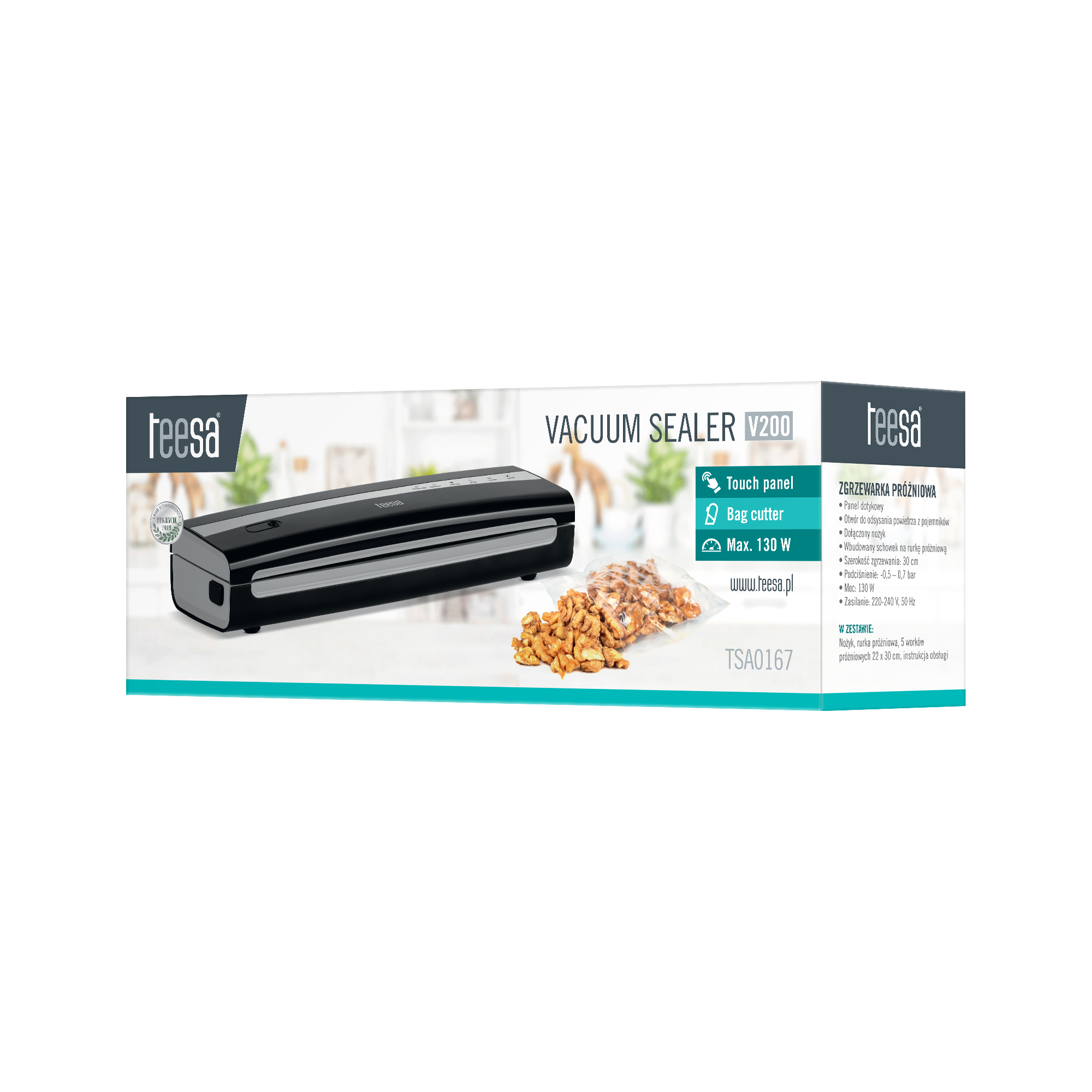 Nie lubisz marnować jedzenia, a może żyjesz zgodnie z zasadą zero waste? Zgrzewarka do pakowania próżniowego Teesa V200 to urządzenie, które powinno znaleźć się w Twojej kuchni. Dzięki niemu żywność będzie dłużej świeża i smaczna. Zatem zachowaj na dłużej swoje ulubione ciasta, owoce, warzywa, mięsa, wędliny, sery, ryby i inne gotowe dania. Pakowanie próżniowe chroni produkty przed bakteriami i pleśnią, dzięki czemu wydłuża ich przydatność do spożycia.