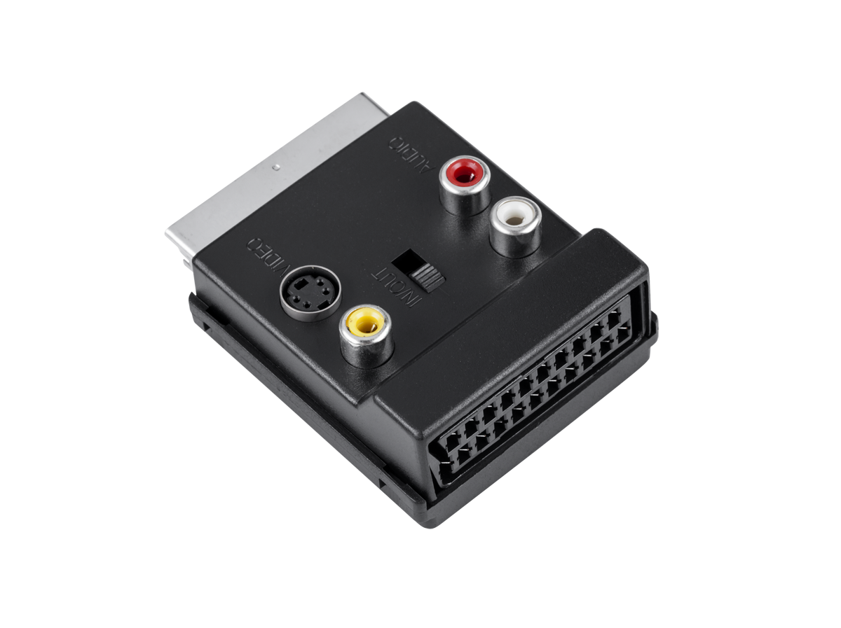 Złącze wtyk Euro - 3x wtyk RCA (Audio L, Audio R, Video) + gnizado Euro, przełącznik in-out