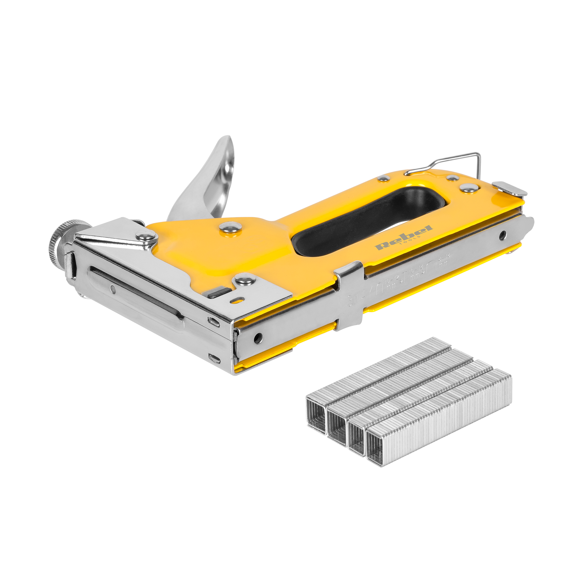 Zszywacz tapicerski Cabletech to niezawodne narzędzie, które ułatwi każdą pracę tapicerską. Dzięki gumowanej rękojeści zapewnia wygodny i pewny chwyt, a regulowana siła wbijania pozwala dostosować narzędzie do różnych materiałów i grubości tkanin.