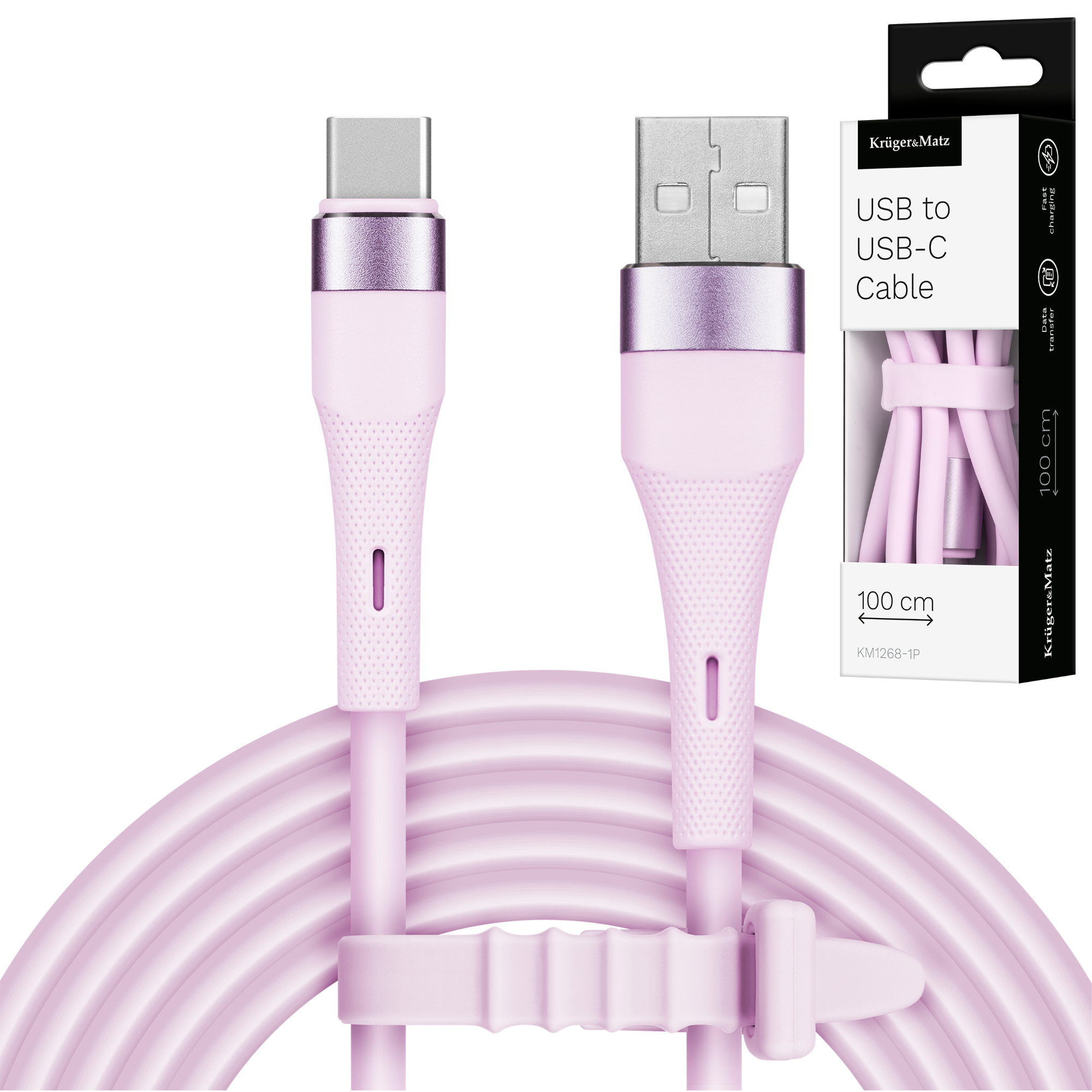 Kabel USB - USB typu C 1 m silikonowy różowy Kruger&Matz Basic