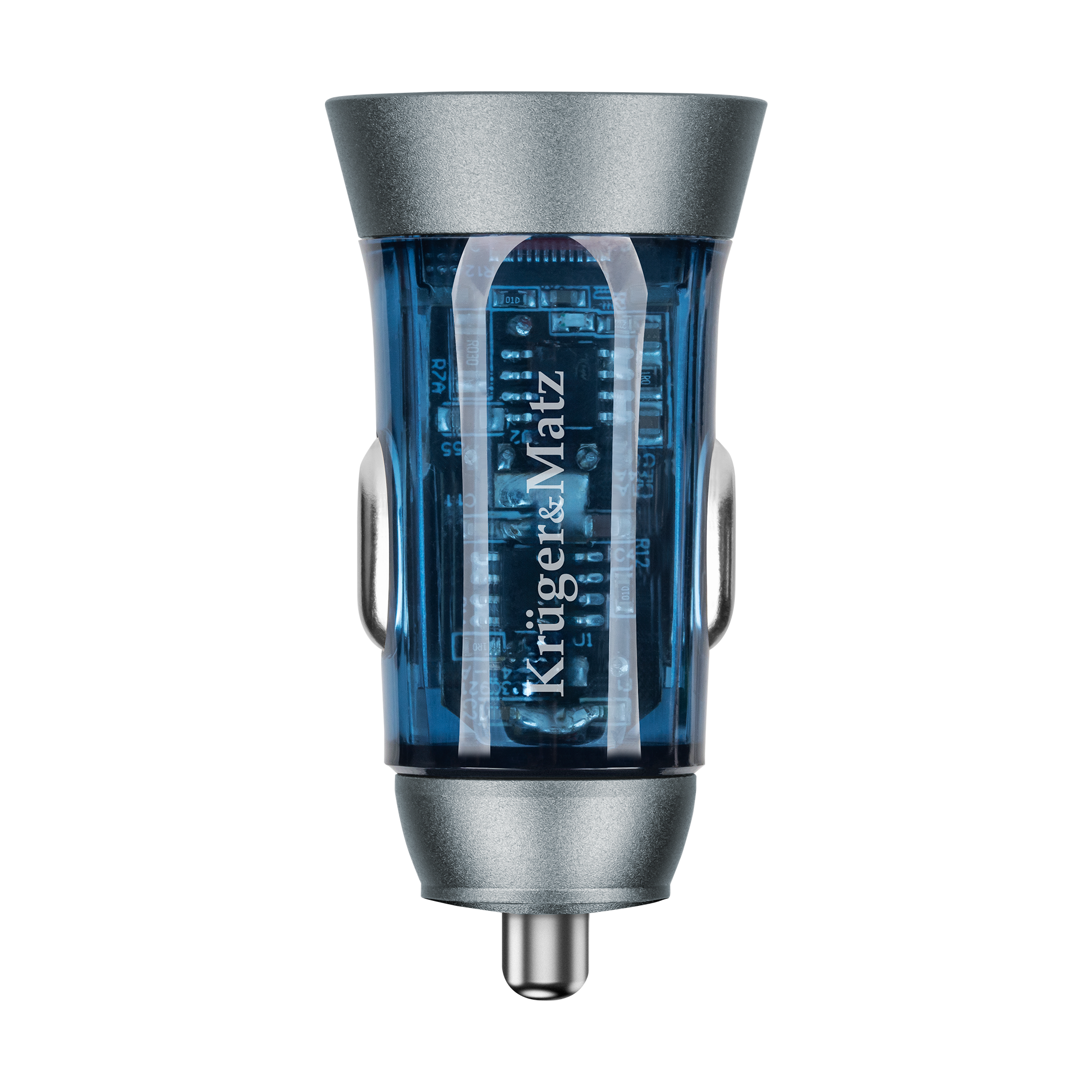 Zaletą ładowarki samochodowej USB Kruger&Matz KM0872 jest kompaktowy rozmiar. Jej obudowa to połączenie trwałego aluminium i wytrzymałego plastiku, co gwarantuje długą żywotność i odporność na uszkodzenia. Przeźroczysta obudowa nadaje urządzeniu futurystyczny wygląd oraz pozwala docenić precyzję wykonania i zaawansowaną technologię.