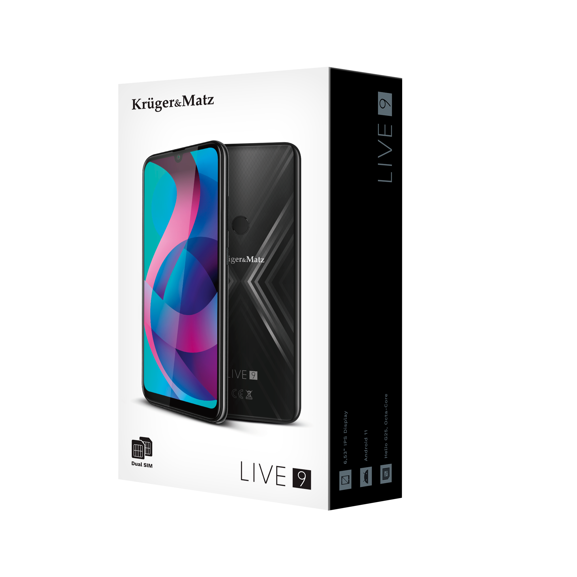 Potrzebny jest Ci smartfon z dużym wyświetlaczem? 9. odsłona smartfonów z serii Kruger&Matz LIVE to model wyposażony w 6,5-calowy wyświetlacz HD+ w proporcjach 19:9. Poczuj wysoki poziom komfortu, zarówno podczas przeglądania stron internetowych, jak też korzystania z różnych aplikacji.