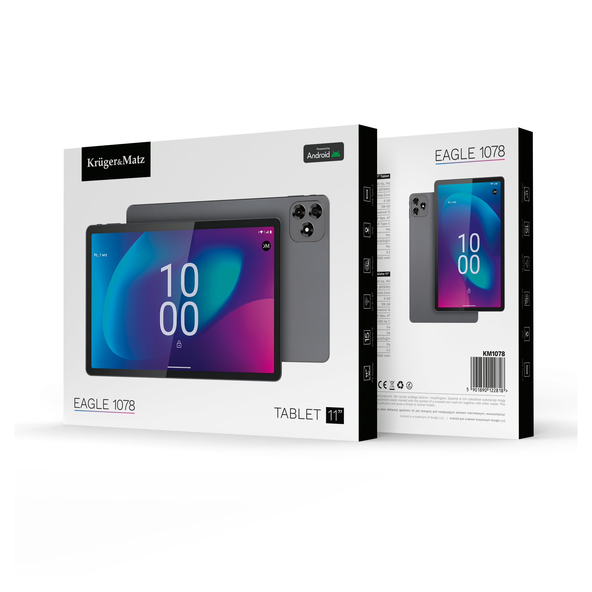 Kruger&Matz EAGLE 1078 to nowoczesny tablet, który sprawdzi się zarówno w pracy, jak też podczas relaksu. Duży ekran, szybkie podzespoły i pełna łączność LTE pozwolą Ci pracować, uczyć się i relaksować bez ograniczeń – w domu, w podróży czy na spotkaniu. To urządzenie, które zawsze nadąża za Tobą.