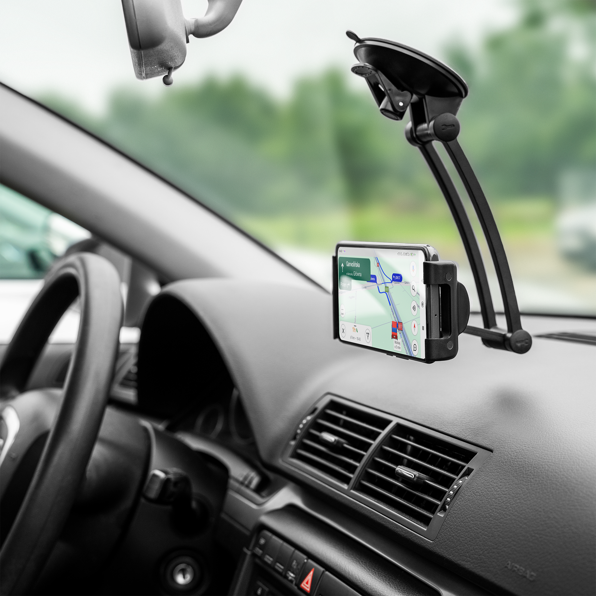 Uchwyt Kruger&Matz wyposażony w solidną przyssawkę, dzięki czemu zapewnia bezpieczne mocowanie na szybie lub innej gładkiej powierzchni. Dzięki temu tablet pozostaje stabilny, nawet podczas jazdy po nierównych drogach.