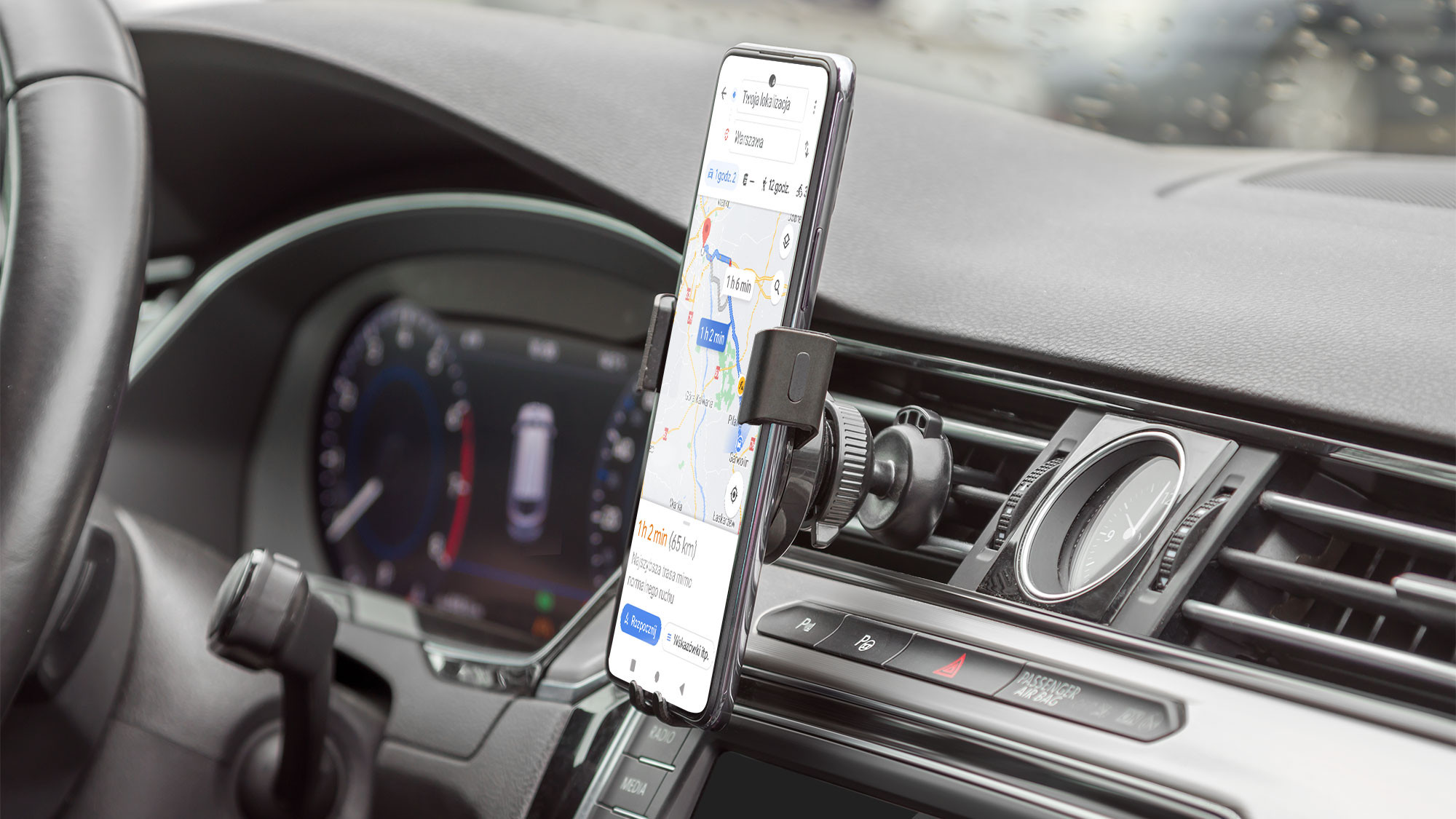 Do atutów akcesorium z pewnością zaliczyć można regulację kąta nachylenia i możliwość obrotu uchwytu o 360°. Dzięki temu uda Ci się dostosować ułożenie telefonu do Twoich potrzeb. Co więcej, dolny uchwyt posiada wcięcie, które umożliwi podłączenie ładowarki. Takie rozwiązanie z pewnością zostanie docenione przez kierowców ruszających w długie trasy.