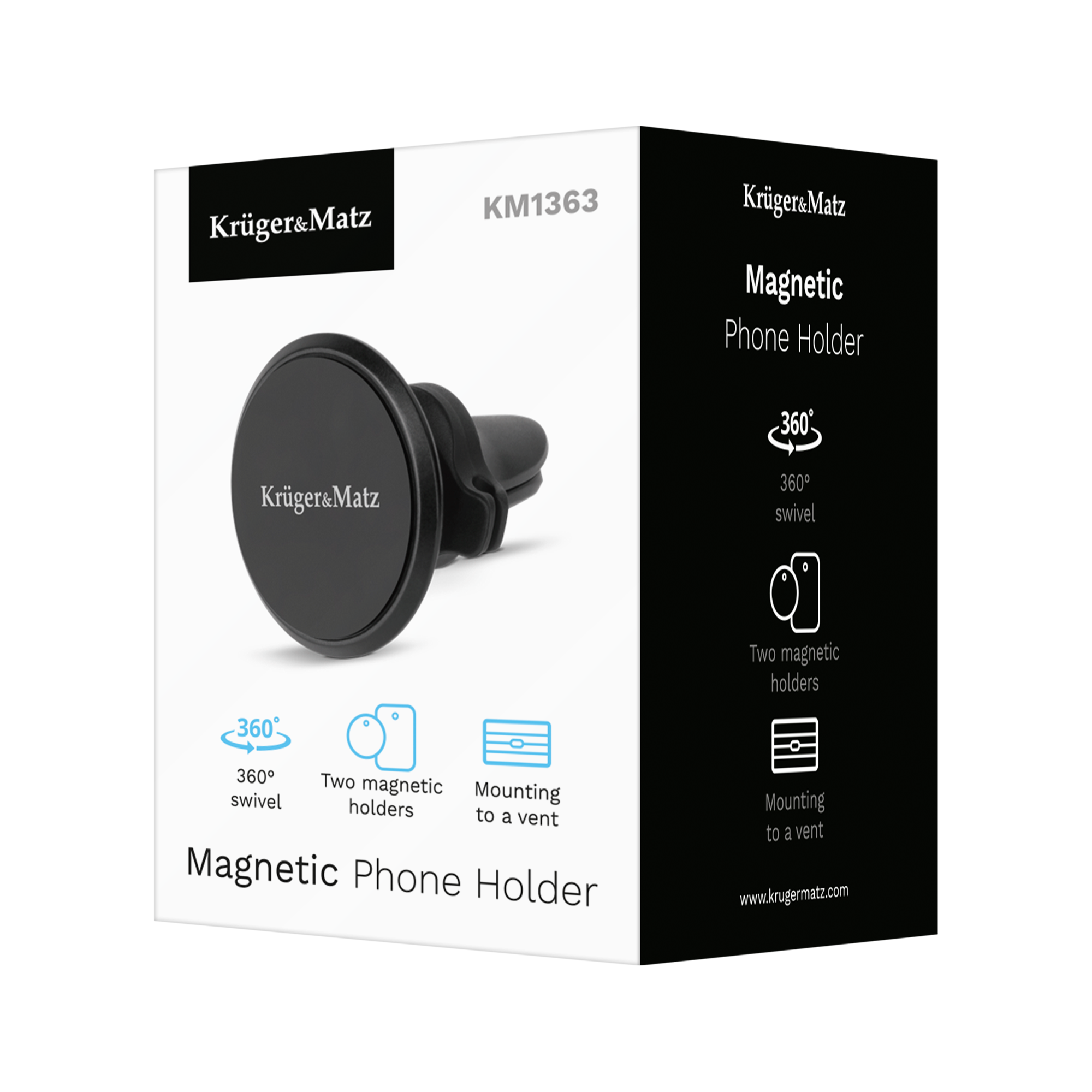 Uniwersalny uchwyt magnetyczny na telefon do samochodu Kruger&Matz posiada możliwość obrotu uchwytu o 360°. Dzięki temu możesz wygodnie dostosować ułożenie telefonu do Twoich potrzeb.