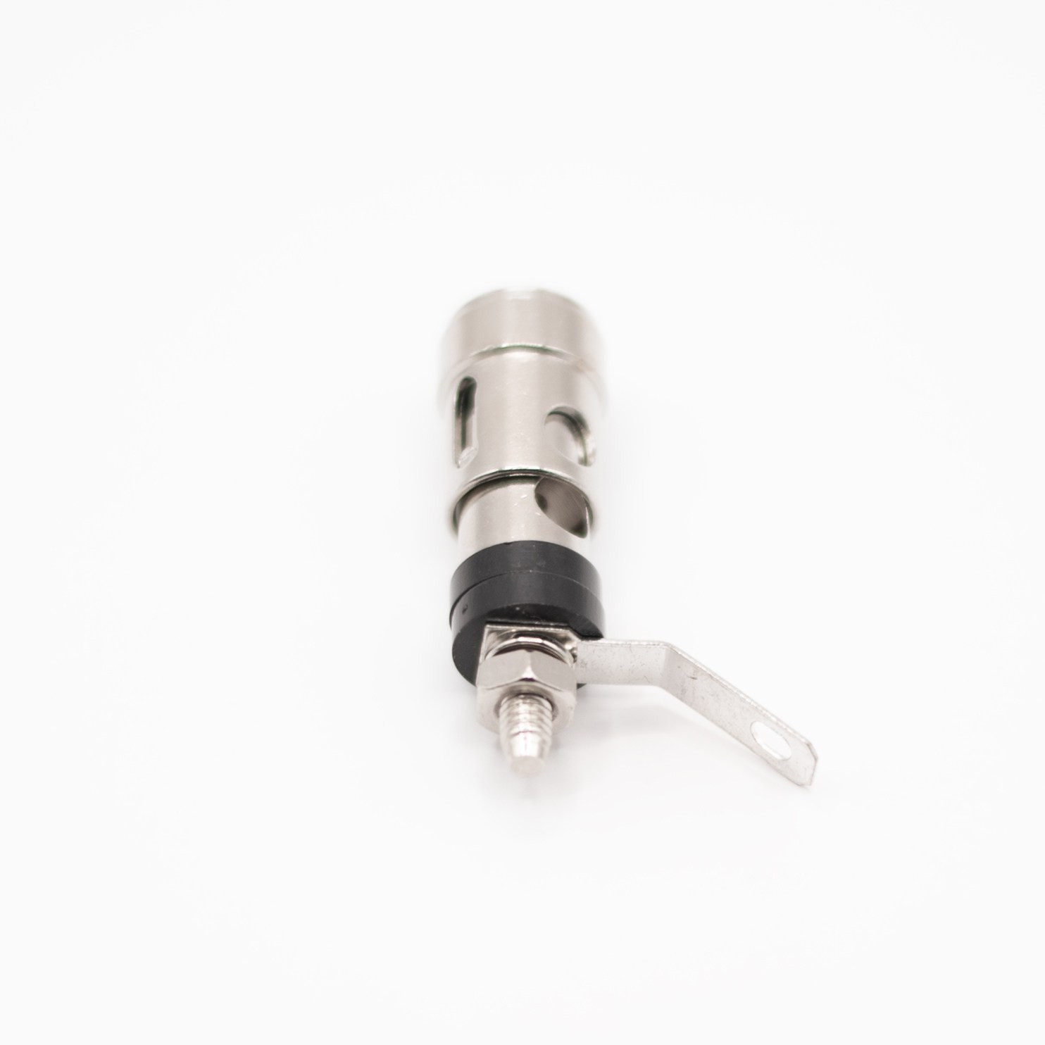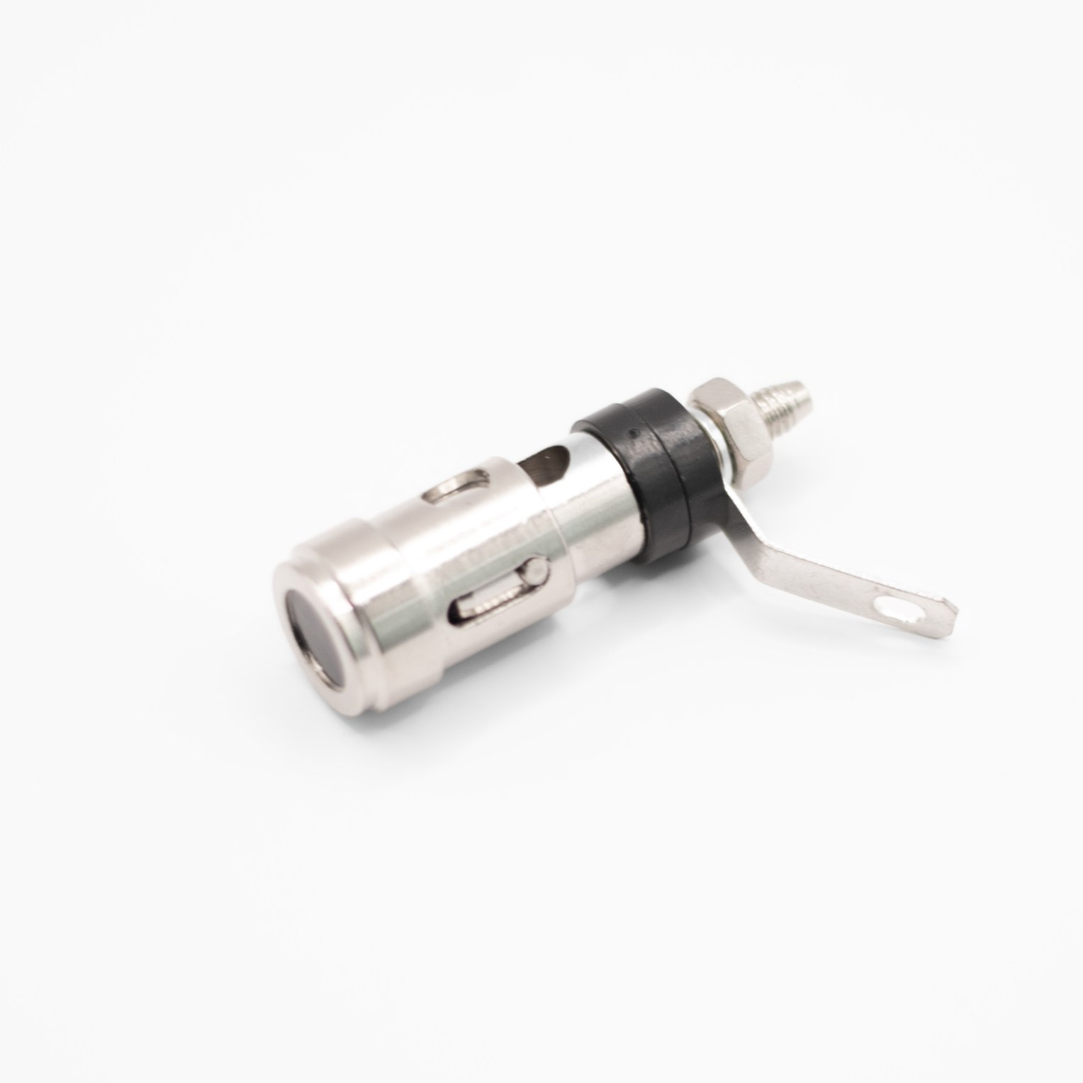 Gniazdo bananowe w kolorze czarnym, wykonane z niklowanego metalu z solidną sprężyną zapewniającą pewne i stabilne połączenie przewodów. Idealne do zastosowań elektronicznych i pomiarowych, kompatybilne z wtykami bananowymi 4 mm. Wytrzymałe i odporne na korozję.