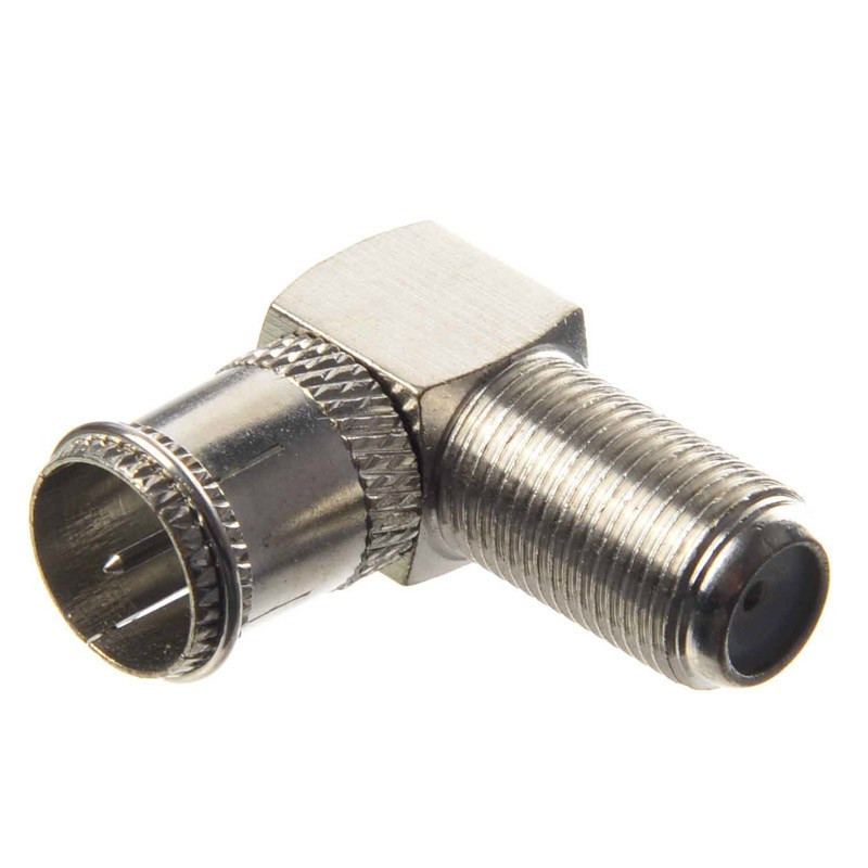 Przejście kątowe z gniazda typu F na koncentryczny wtyk telewizyjny