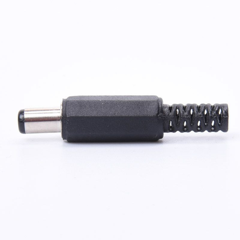 Wtyk DC 1,7/5,5 zasilający do montażu na przewodzie. Całość składa się z dwóch skręcanych elementów - wtyku z metalową końcówką do lutowania oraz plastikowej końcówki z odgiętką na kabel. Średnica zewnętrzna wtyku: 1,7mm, średnica zewnętrzna 5,5mm.