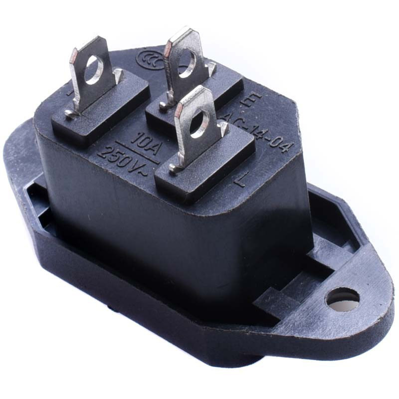 Wtyk zasilający IEC320 szybkozłączny z konektorami, do montażu w obudowie. Posiada otwory montażowe.