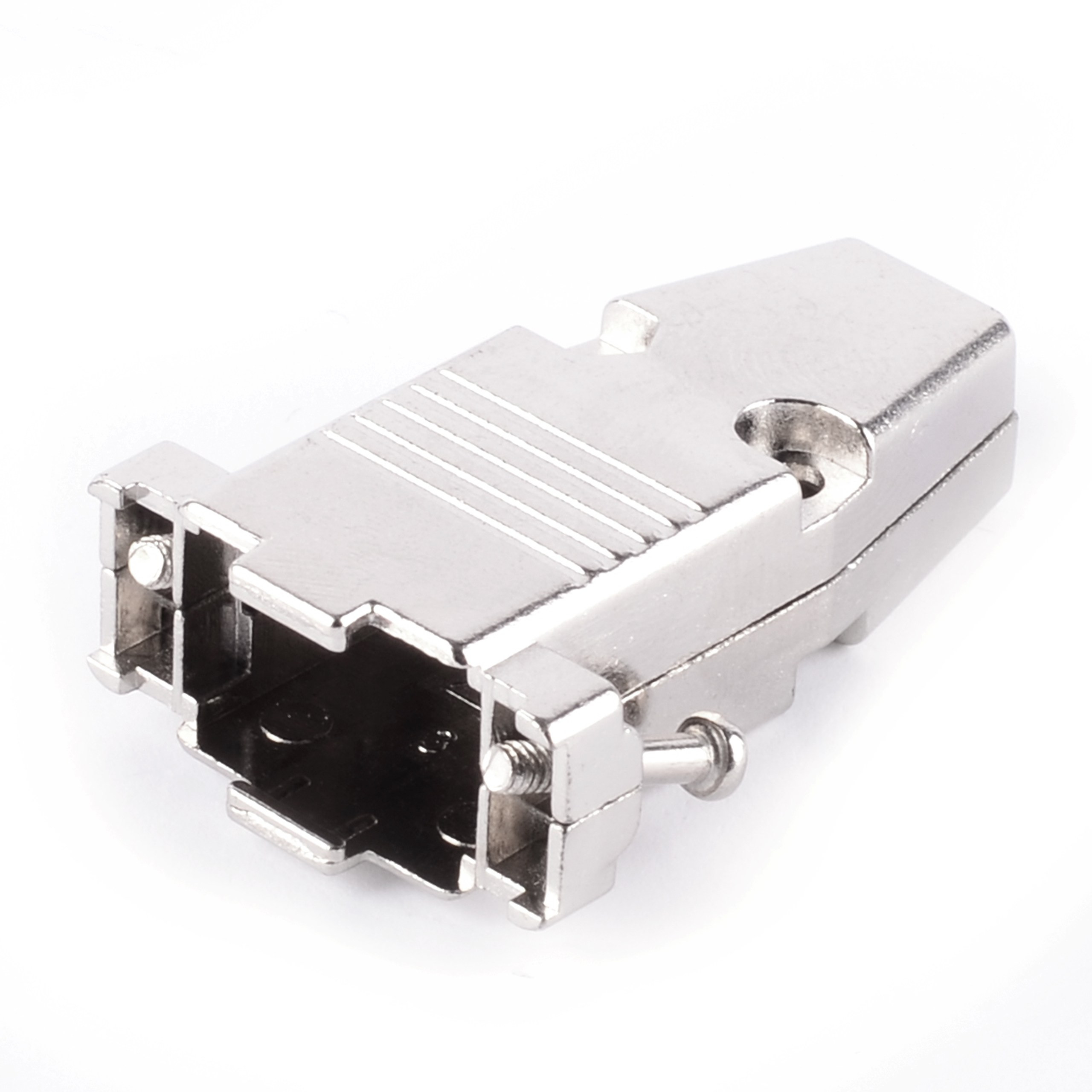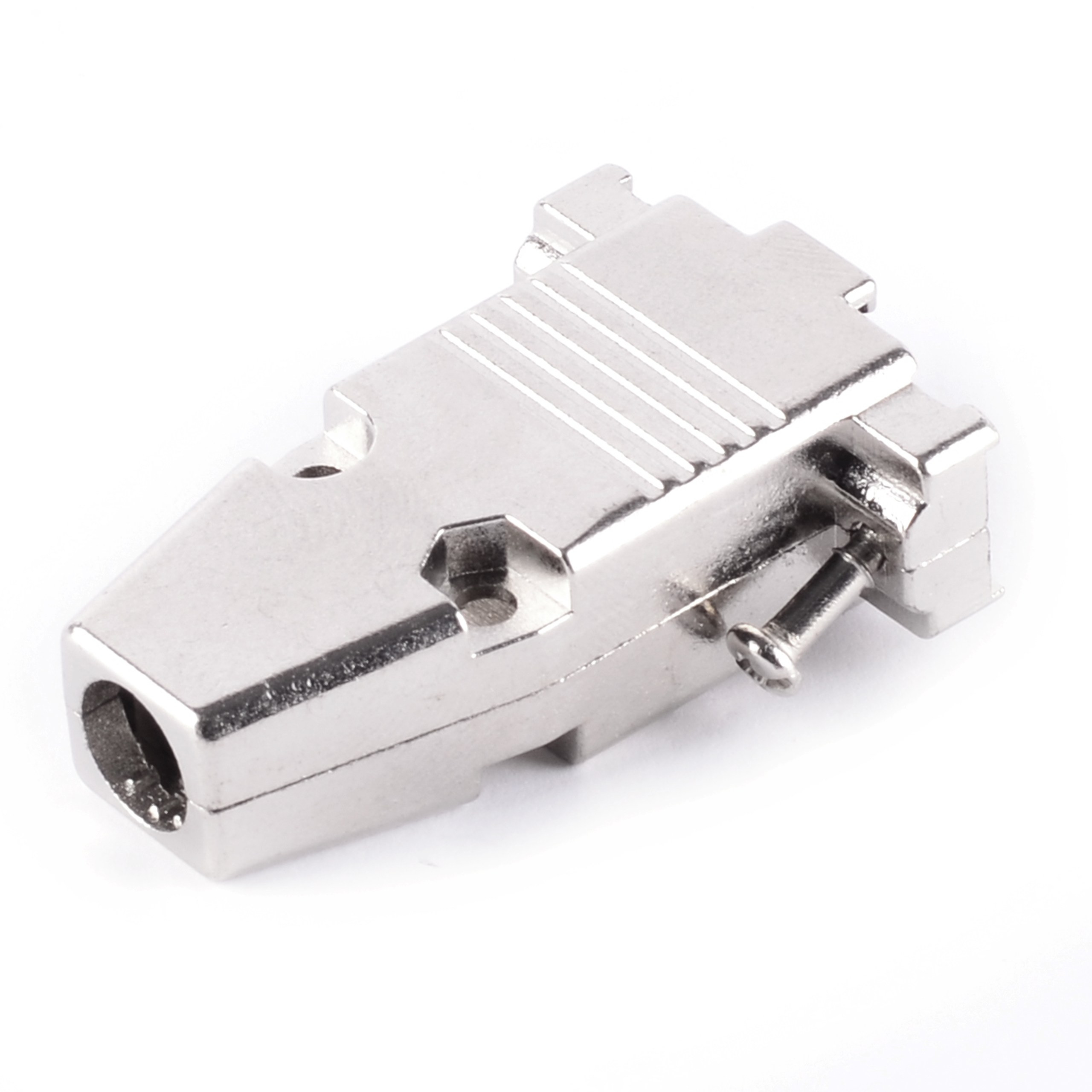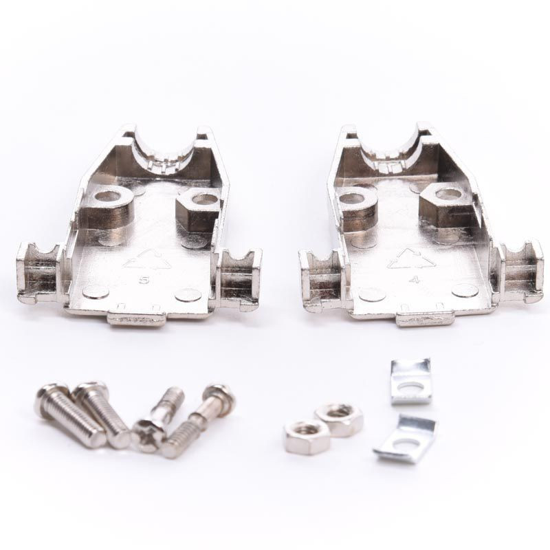 Metalowa obudowa skręcana wraz z kompletem śrub do złącza sygnałowego D-SUB 9, dopasowana do wtyku i gniazda montowanego na przewód. Obudowa jest kompatybilna z D-SUB 9 i D-SUB 15 (3-rzędowym). Chroni część lutowaną złącza przed uszkodzeniem.